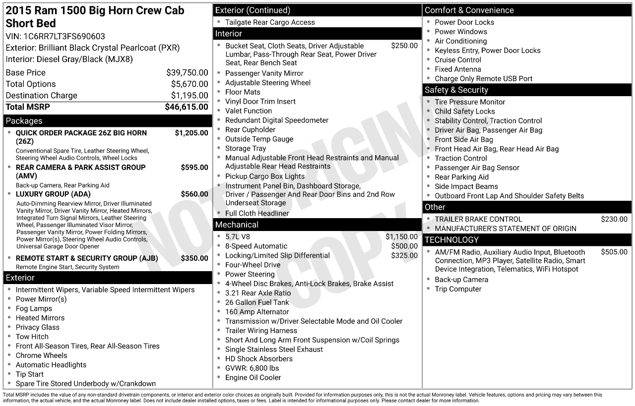 2015 RAM 1500 Big Horn Crew Cab Short Bed
