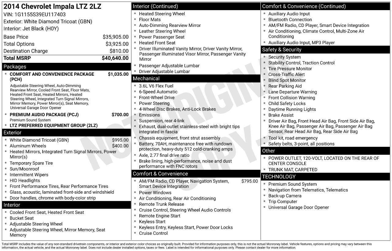 2014 Chevrolet Impala White Diamond Clearcoat Here at Selective Motors. With over 25 years of experience in the car business All of our cars are Hand Picked to provide you with high quality Used Vehicles at Very Competitive Pricing & Excellent Service.